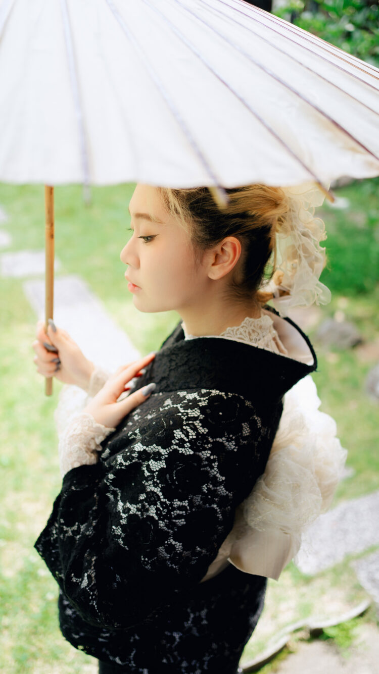 レースインナー、帯揚げ、帯飾りレース、帯留め、チュール、髪飾り、足袋、草履、バッグ。